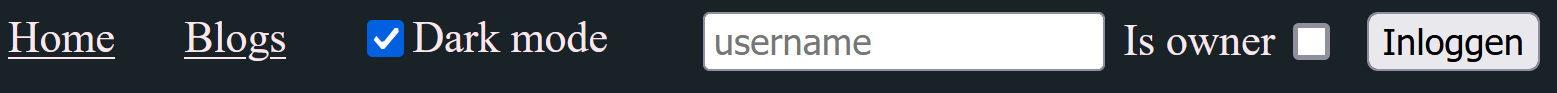 De functie component LoginForm bestaat uit een textinput waar de gebruikersnaam ingegeven kan worden, de component bevat bovendien een checkbox die (bij gebrek aan een authenticatieserver) aangeeft of de gebruiker al dan niet de eigenaar is van deze blog. Merk op dat de gebruikersnaam geen belang heeft, elke gebruikersnaam wordt goedgekeurd, zolang deze minstens 1 karakter lang is.