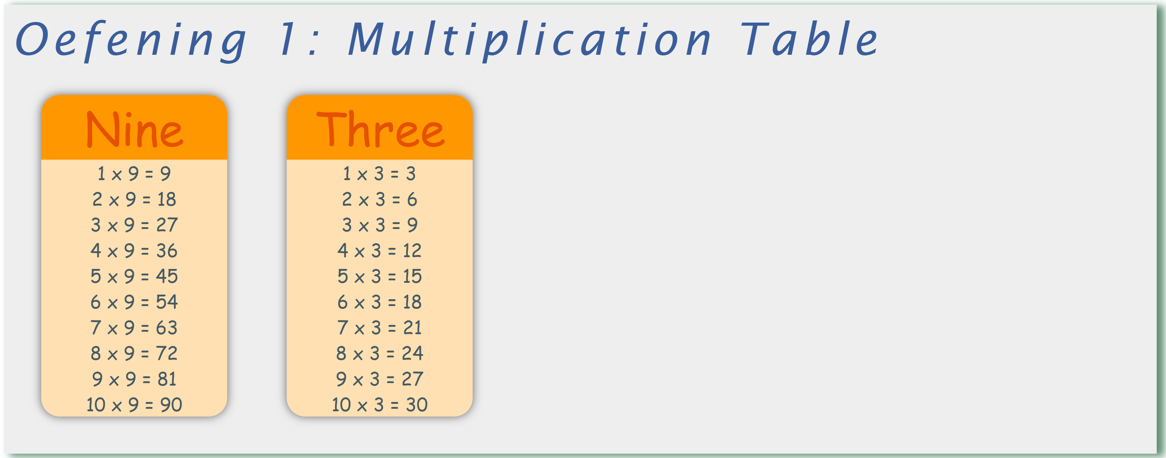 Oefening 1: Multiplication Table