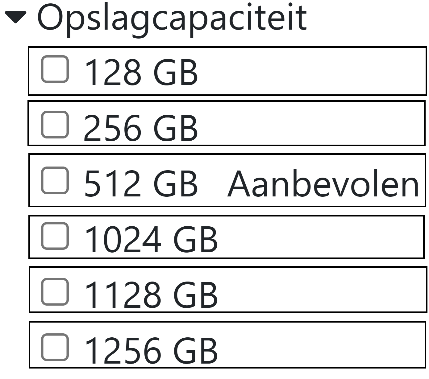 Naast het weergeven van de opties moet de component dichtgeklapt kunnen worden. Hiervoor gebruik je de state van de component Filter. Het pijltje naar beneden wordt door Font Awesome gedefinieerd in het object faCaretDown. Een dichtgeklapte filter gebruikt het faCaretUp icoon en ziet er als volgt uit.
